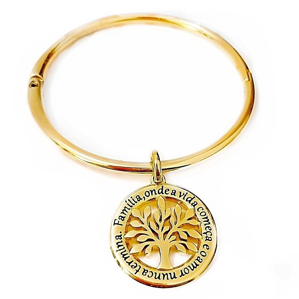 Apresentamos o Bracelete Árvore da Vida, uma celebração de família, amor e conexões eternas. Este bracelete não é apenas uma peça de joalheria, mas um símbolo poderoso de onde a vida começa e o amor nunca termina. Com um pingente de 3x3 cm meticulosamente trabalhado, apresentando a Árvore da Vida acompanhada da inscrição inspiradora sobre família, cada detalhe é banhado a ouro 18k, refletindo qualidade e beleza duradouras. Disponível em tamanhos de aro de 18 e 20 cm, ele oferece um ajuste perfeito para todos. O Bracelete Árvore da Vida é mais do que um acessório; é uma herança, um lembrete constante do que é verdadeiramente importante na vida.